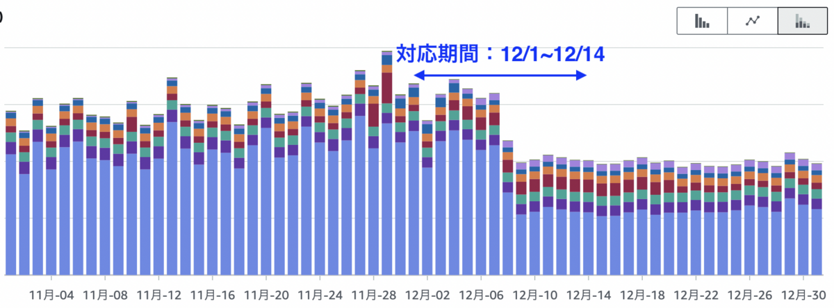 嬉しいことにAmazon RDSの費用も減り、12月は前月と比べて22%程度削減されました。