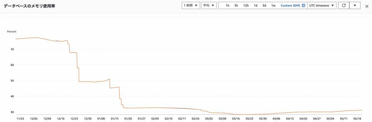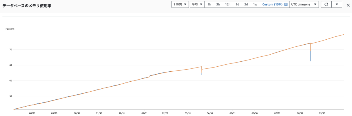 ある日、別件でタイムライン表示に使われているElastiCacheを調べているとメモリ使用率が右肩上がりで増え続けていることに気付きました。